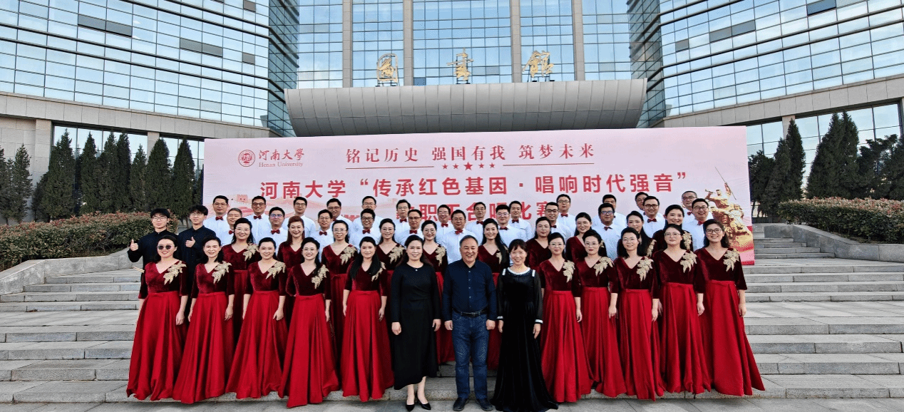 12月6日,由河南大学党委宣传部和河南大学工会委员会主办的“传承红色基因・唱响时代强音”教职工合唱比赛在金明校区图书馆圆满落幕。我院教职工合唱队以一首经典红歌《打靶归来》登台亮相,在赛场留下了昂扬鲜活的身影。