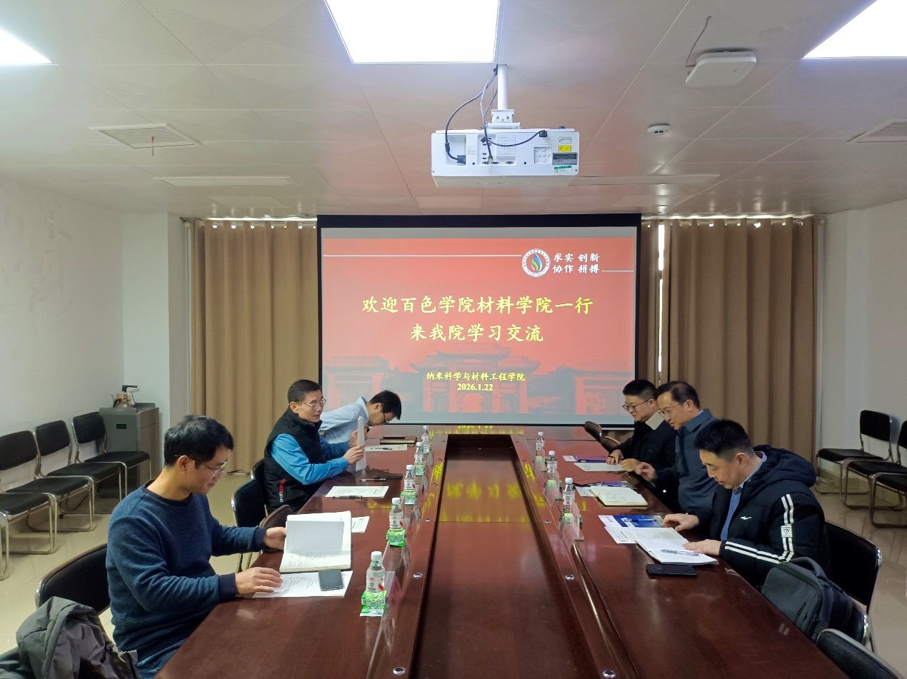 1月22日上午,百色学院材料科学与工程学院院长卿培林一行三人到我院访问交流。纳米科学与材料工程学院执行院长白锋及部分领导班子成员参加了座谈交流。