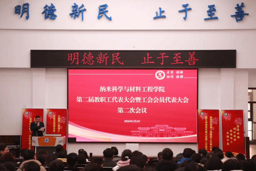 2026年2月2日,纳米科学与材料工程学院第二届教职工大会暨工会会员大会第二次会议于郑州校区召开。学院全体教职工齐聚一堂,共商发展大计。会议由副院长王书杰主持。
